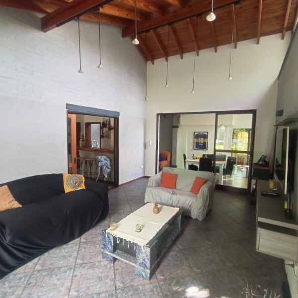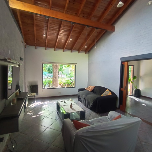 En planta baja, una habitación en suite, con hidronasaje en su baño, linvig integrado a la cocina,baño con doble circulación , muy luminosa , garage pasante , quincho , lavadero,pileta revestida en venecitas con playa húmeda, riego por aspersión con detector de Hunedad.