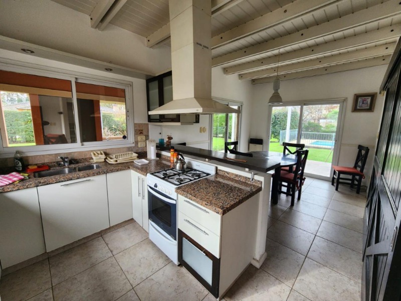 En planta baja, una habitación en suite, con hidronasaje en su baño, linvig integrado a la cocina,baño con doble circulación , muy luminosa , garage pasante , quincho , lavadero,pileta revestida en venecitas con playa húmeda, riego por aspersión con detector de Hunedad.