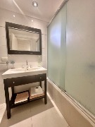 Baño completo con bañera y mampara que hace de