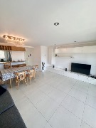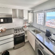 Gran living comedor con cocina incorporada por barra … bellísima vista mar desde ventana de la cocina. Espacio Lavarropas.-
