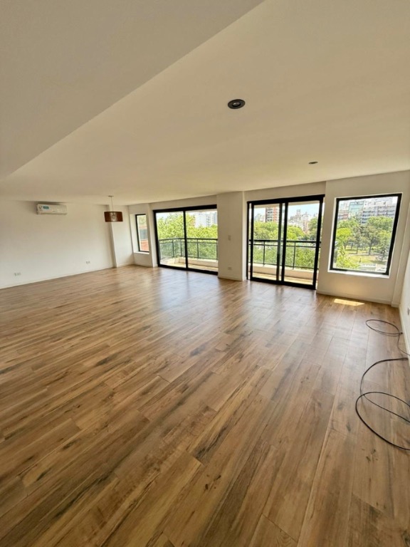 Acceso privado por ascensor individual al piso, con gran living y comedor con balcón corrido con vista a la plaza.-