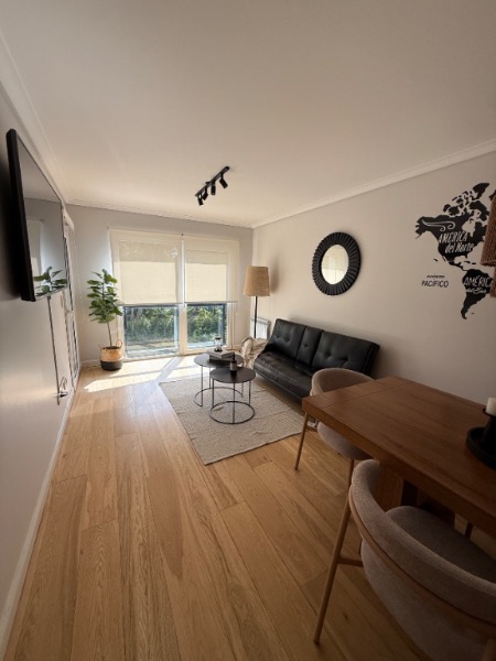 Amplio living comedor, cómoda y muy luminosa cocina. 2 habitaciones, dos baños, habitación principal en suite con vestidor y jaccuzi. Balcón al frente.